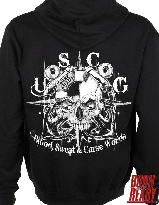 If “Blood, Sweat, & Curse Words” sums up your daily operations then you might be a Coastie. The beautifully carved anchors and compass rose hold fast behind the ominous skull face. Protruding from the skull is the Born Ready life ring. The life ring is weathered, scraped and battered. Holding strong to the past and ready to respond when the time comes. Strong, comfortable. Hoodies available from small through 3XL. Designed by American veterans Please allow 10-14 days for custom printing.